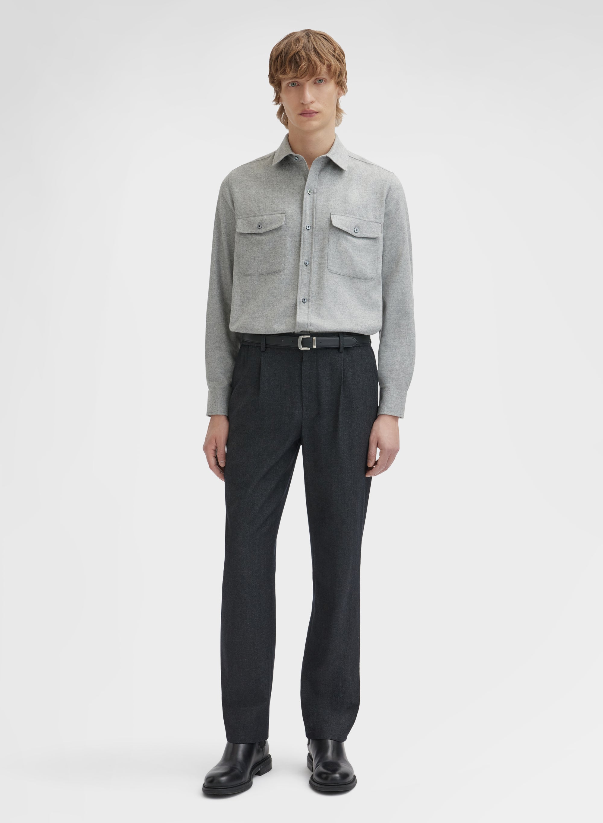 CASHMERE SILK DRAP SHIRT GRANITE