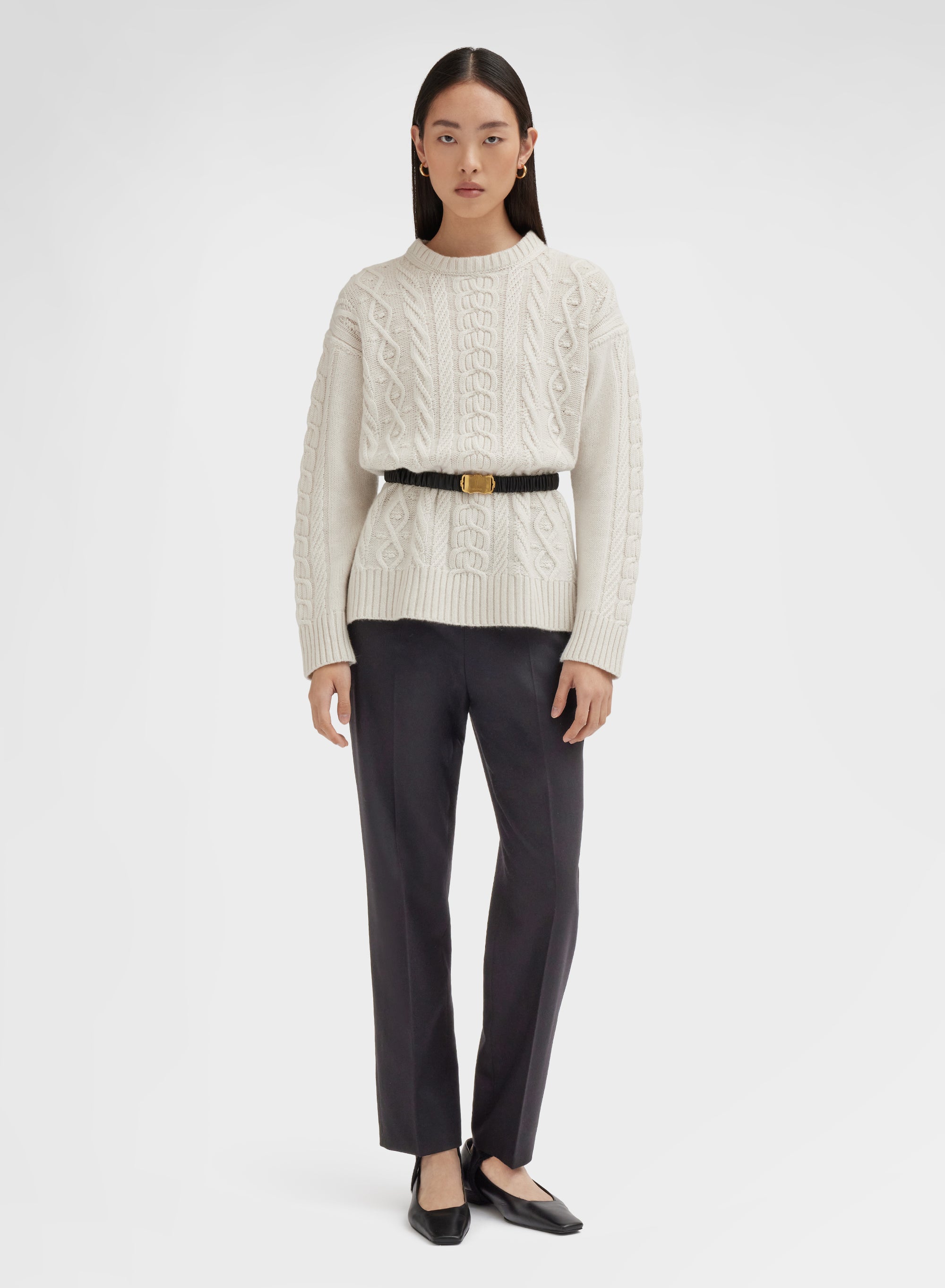 CREWNECK LONG SLEEVE CASHMERE PLAITS WHITE
