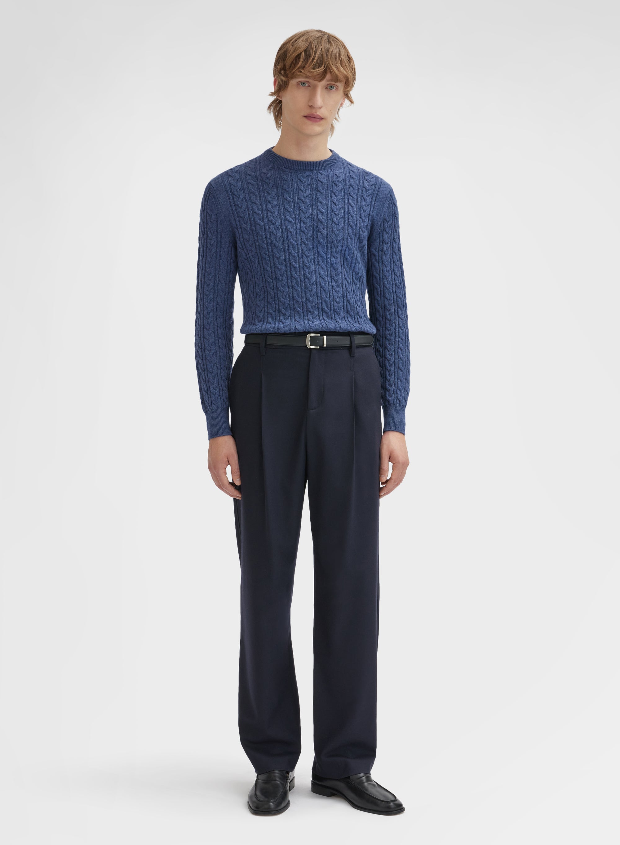 LONG SLEEVE CREWNECK CASHMERE TRECCIA BLUE STONE