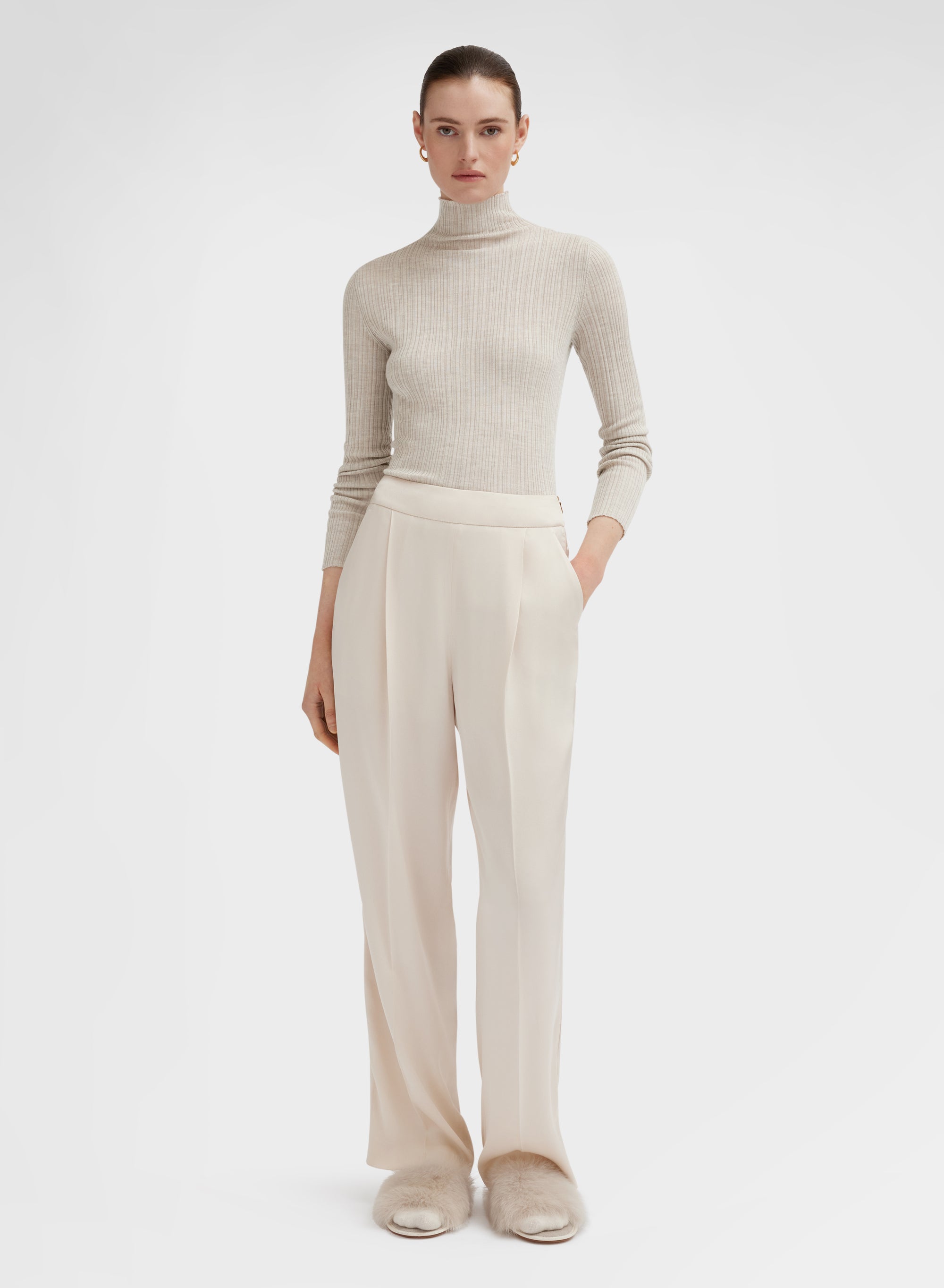 CASHMERE SILK MICRO PLISSÉ MOCK NECK CHANTILLY