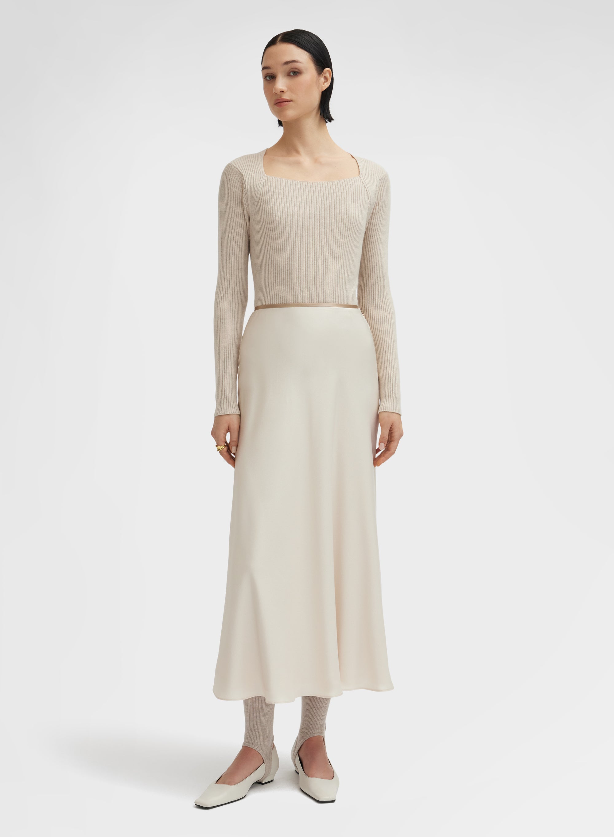 SILK BLEND SATIN SKIRT CHAMPAGNE