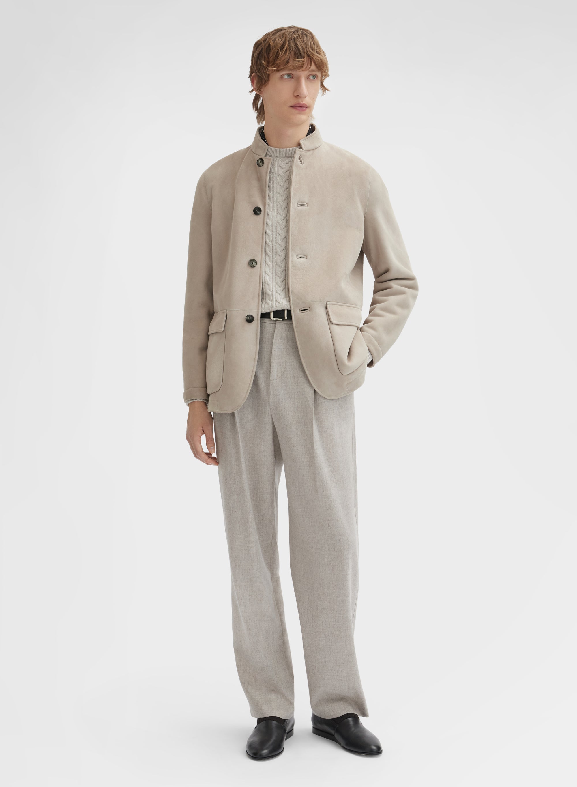 SUEDE SHEARLING JACKET TAUPE