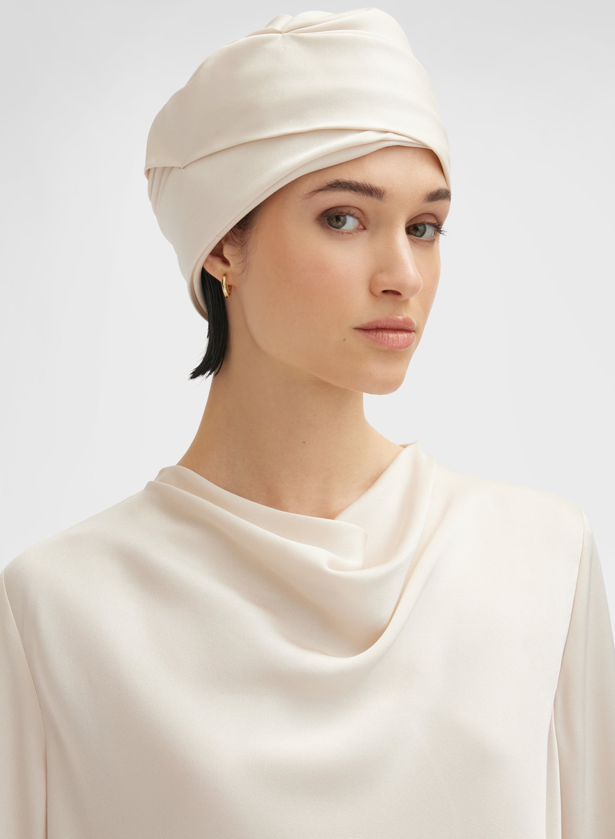 WOMAN SILK BLEND SATIN HAT CHAMPAGNE