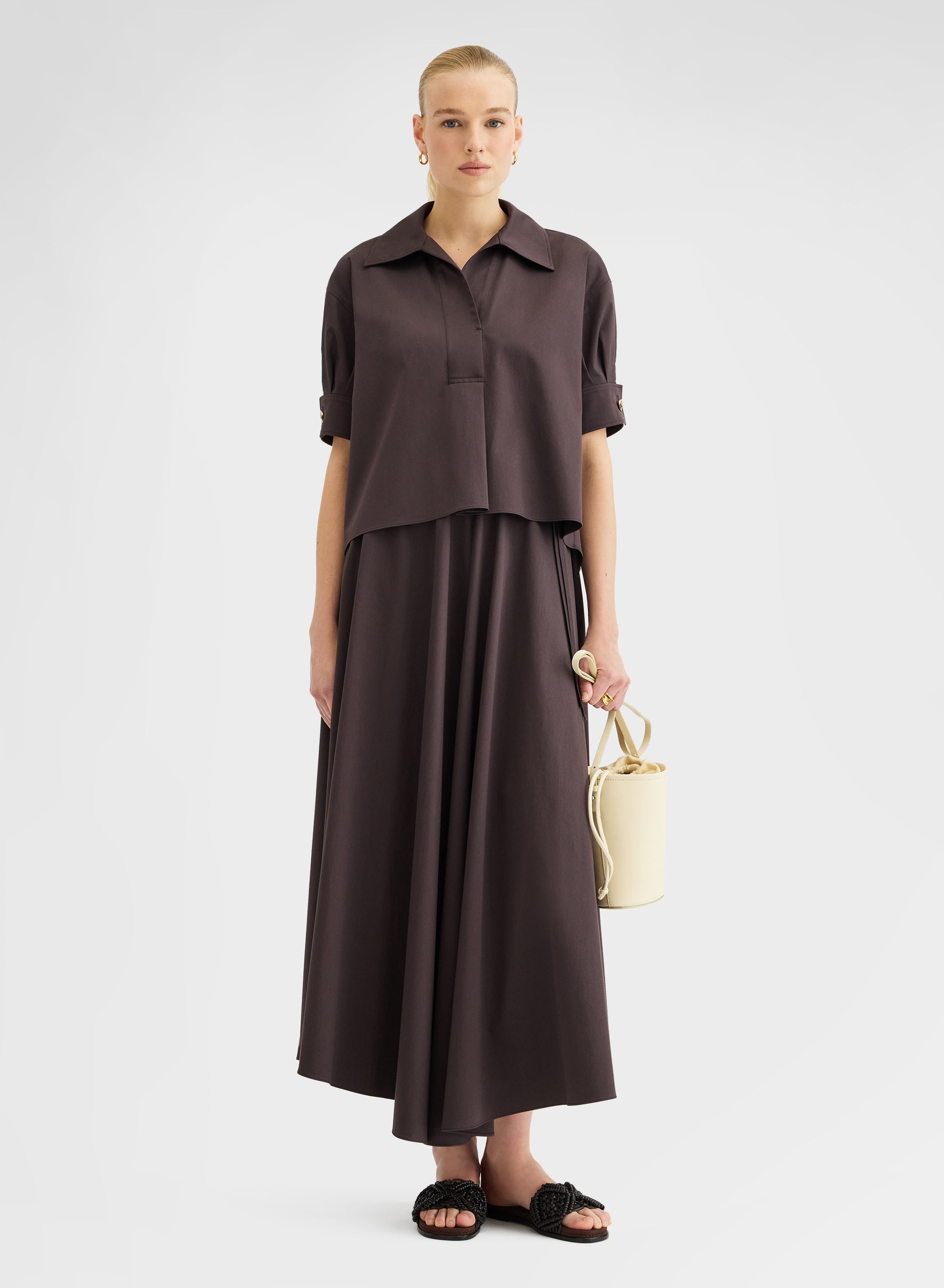 COTTON SATIN SHIRT CHOCOLATE